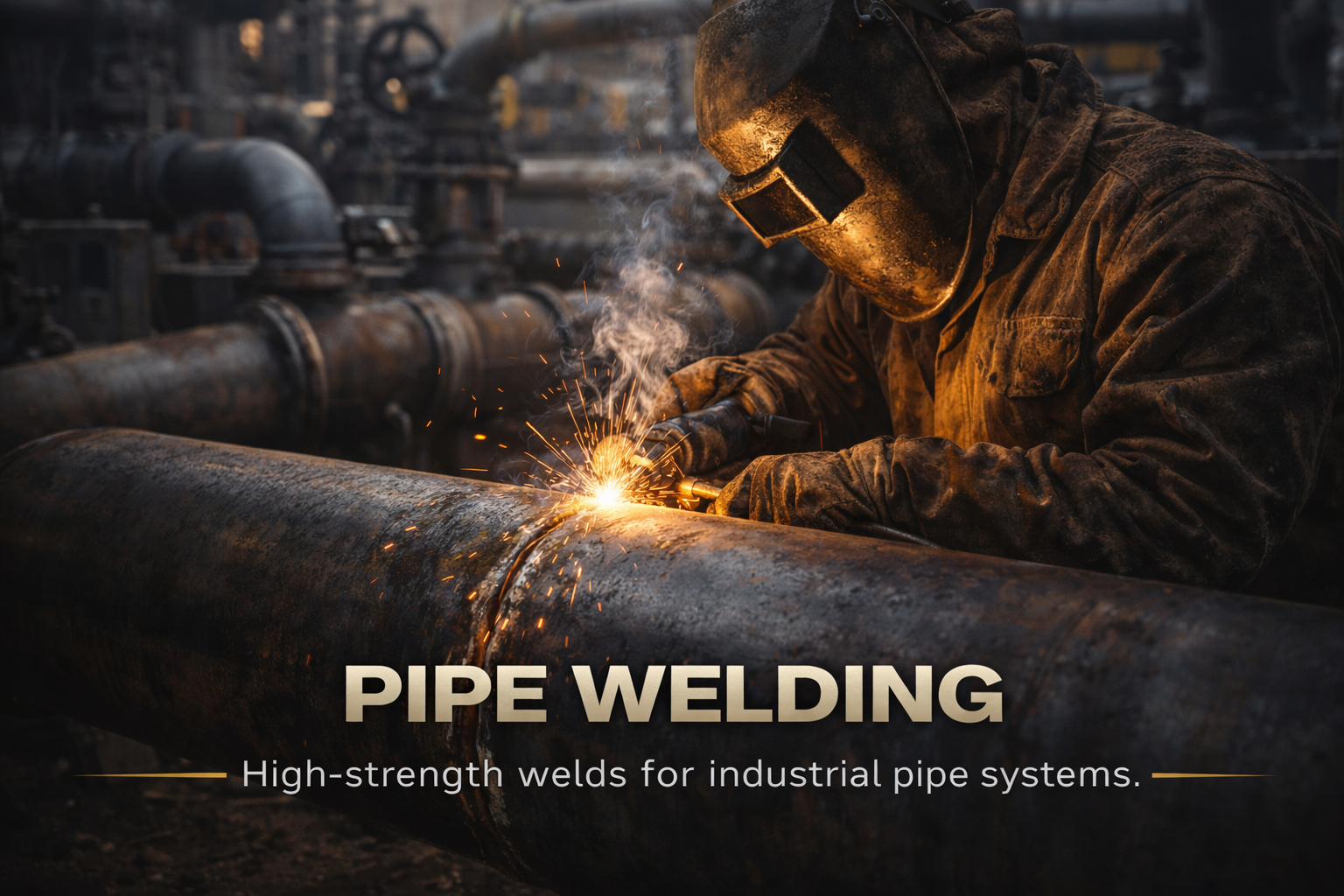 High-strength welds for industrial piping systems, ensuring leak-free performance under pressure.
